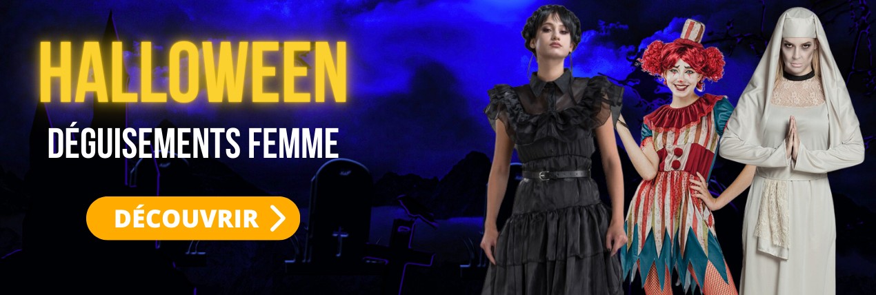 Nous proposons sur notre site un choix immense en déguisements pour les soirées déguisées. Vous y trouverez tous les classiques des soirées comme les costumes de pirates, chevaliers, romains, indiens, cowboys, sans oublier les tenues hippies, disco, charleston… Nous proposons également de nombreux accessoires, c’est parfait pour rendre un déguisement encore plus réaliste !Si vous êtes à la recherche d’un costume original, marrant, vous êtes au bon endroit. En effet, nous avons une large sélection de modèles originaux comme le costume de hot-dog, de pot de fleur ou encore la bouteille de bière. Pour un modèle marrant, nous vous conseillons le déguisement de zizi, de crotte ou un costume porte-moi qui donne l’impression que vous vous promenez sur le dos d’un poulet, d’une licorne ou d'un lutin.